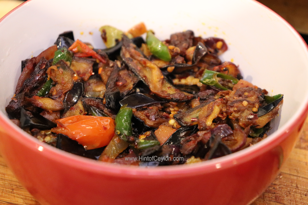 Add fried aubergine and stir well. Add the chilli flakes and stir again.